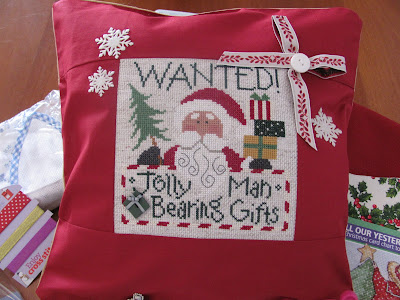E questa invece un dettaglio del "regalone": un cuscino confezionato da me con ricamato